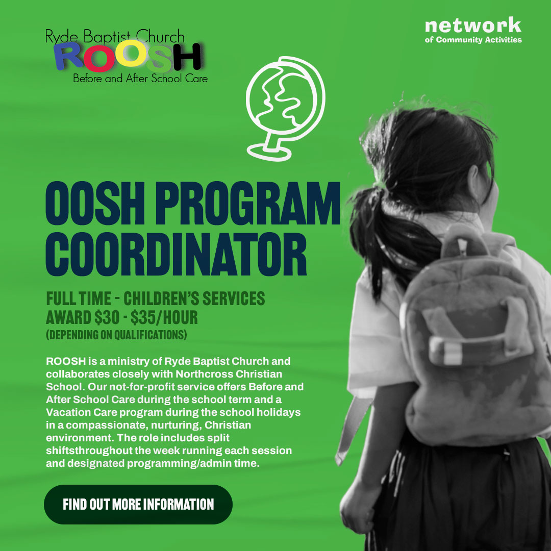 ROOSH is a ministry of Ryde Baptist Church and collaborates closely with Northcross Christian School. Our not-for-profit service offers Before and After School Care during the school term and a Vacation Care program during the school holidays in a compassionate, nurturing, Christian environment.